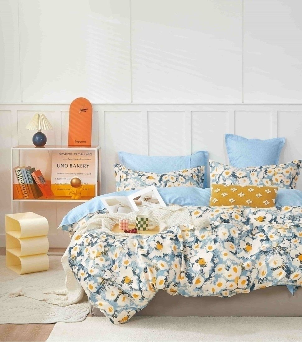 1.5-спальный, сатин, пододеяльник 150x210 см, простыня 150x225 см, наволочка 70x70 см, бежевый/голубой
