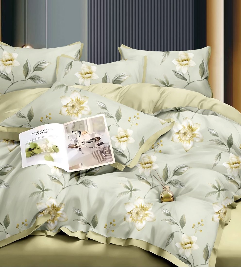 1.5-спальный, сатин, простыня 150x225 см, наволочка 70x70 см, темно-синий/серый/зеленый