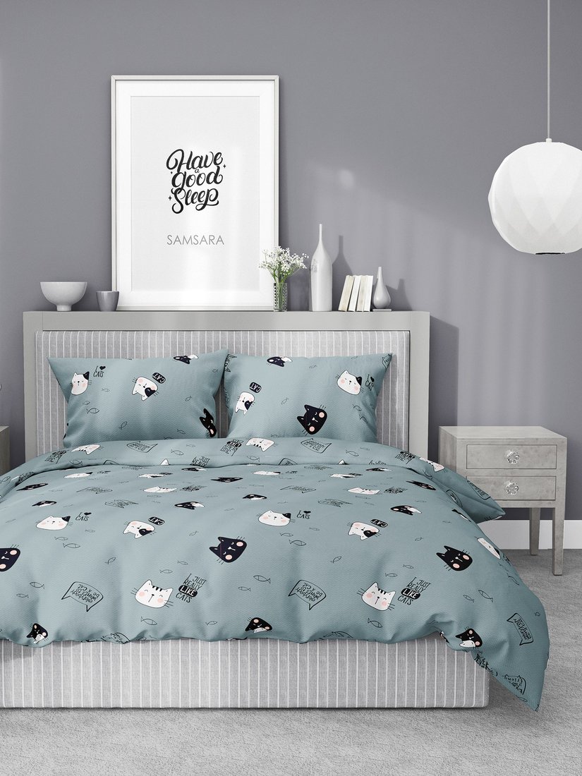 1.5-спальный комплект постельного белья Samsara Мяу 1.5сп (простыня на резинке)