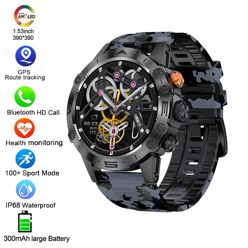 1.53"AMOLED Smart Watch Make Call(Answer/Dial Calls) with Fitness Tracker Heart Rate SpO2 Monitor for Android IOS