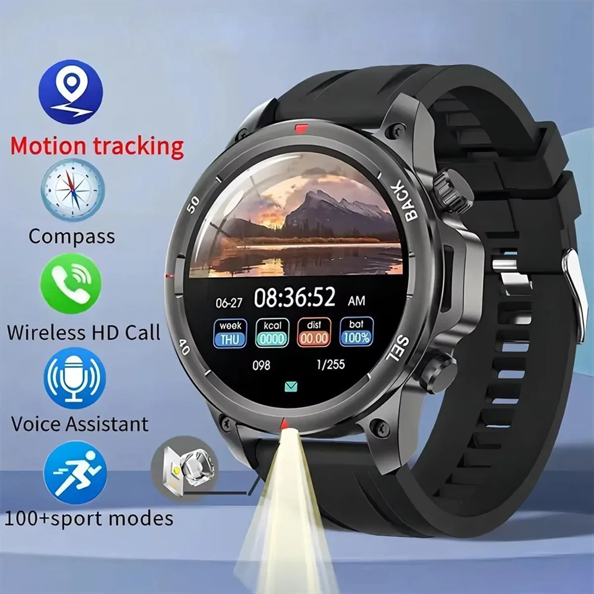 1.53 Inch Smart Watch LED Strong Light Bluetooth Wireless Call IP67 Waterproof 410mAh Battery Compass NFC Smartwatch