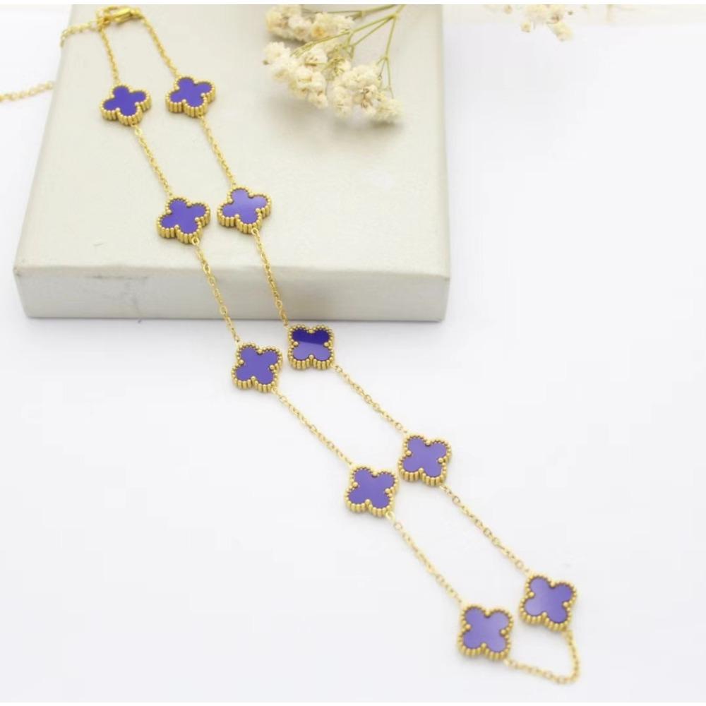 10 Цветок Свитер Цепочка Четырехлистный Клевер Ожерелья Легкая Роскошь Моды Цветок Подвеска Замок Кость Цепочка Ожерелье фиолетовый