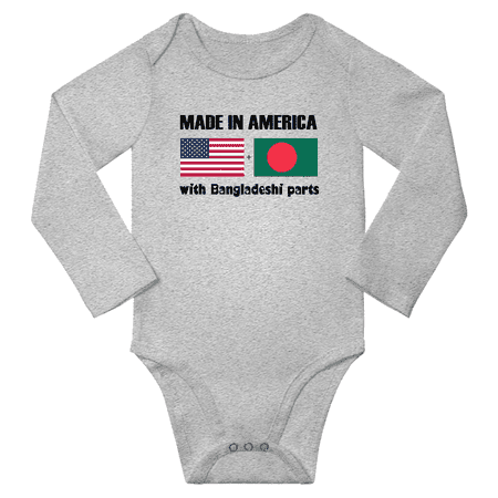 Made in America With Bangladeshi Parts Baby Long Sleeve Romper (Gray 12 Months)