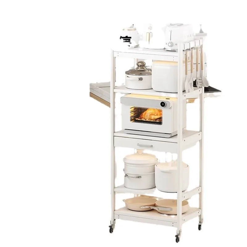 Solid Wood Mobile Tea Cart Living Room Small Apartment Coffee Table Balcony Tea Cabinet Black Walnut Stone Plate Tea Table