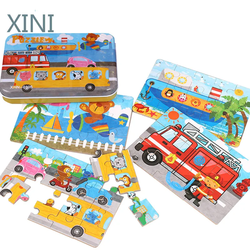 10 видов стилей головоломка для детей с героями мультфильмов, 4 в 1 Пазлы металлическая железная коробка для хранения 3D деревянные головоломк...