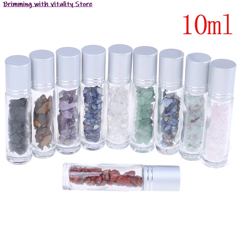 10 мл Натуральные полудрагоценные камни, эфирное масло, драгоценный камень, роликовые бутылки, прозрачные стеклянные лечебные Кристальные ч...