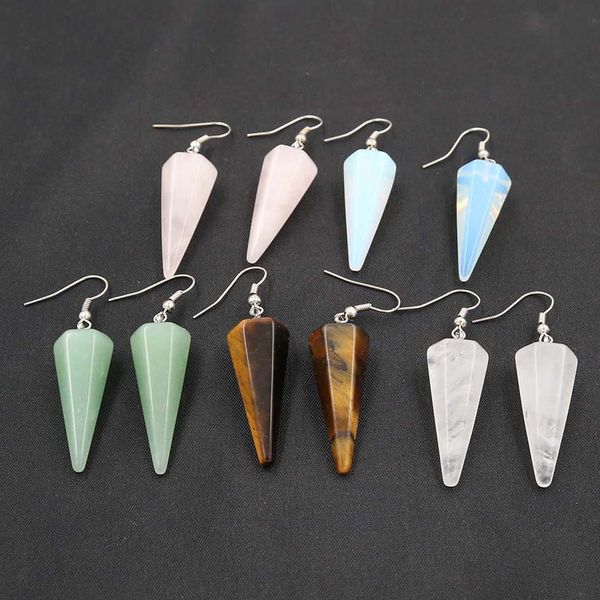 10 пара посеребренной шестигранная пирамиды тигрового глаз камень мотаться серьги для женщин горного хрусталя ювелирных изделий, Silver