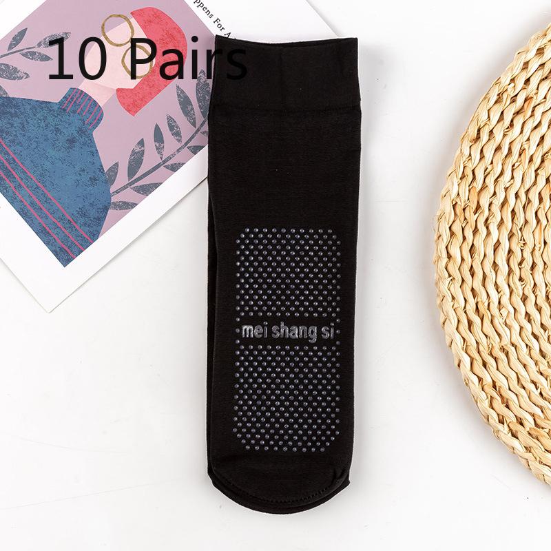 10 пар женских весенне-осенних массажных самоклеящихся противоскользящих утолщенных чулок-носков с защитой от зацепок 10 Pairs чёрный
