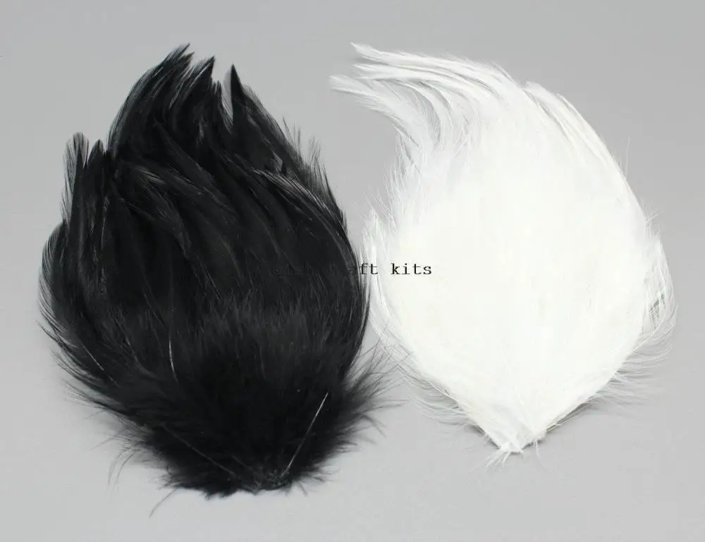 10 подушечек Ворон черно-белые перья аппликация. Изделие для рукоделия, для шляп, масок, костюмов, шляп, головных уборов