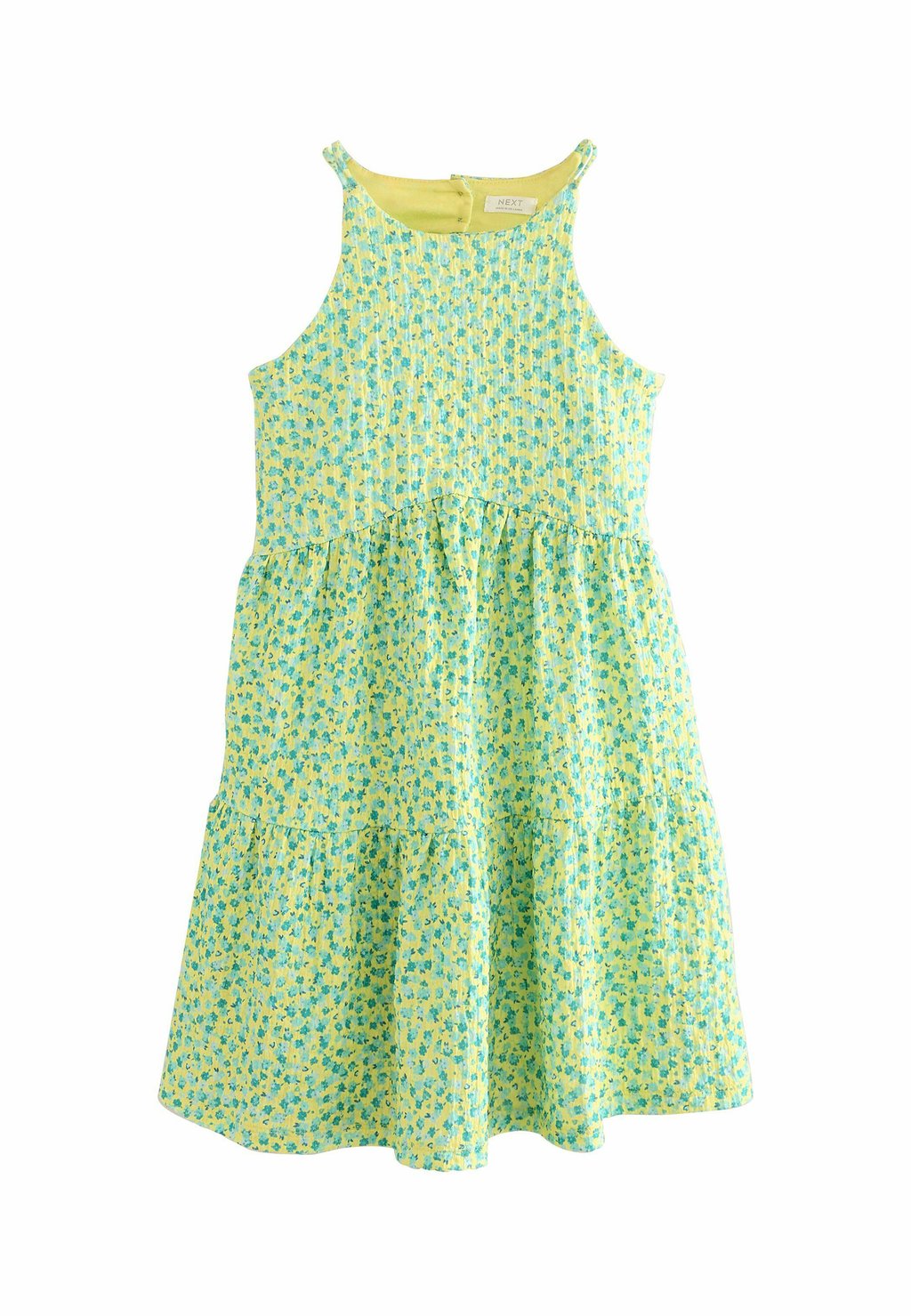 2023 New Spring Autumn Flower Printed Yellow Dresses Full Sleeve Women Mid-carf Loose Dress with Sashes