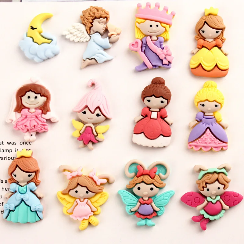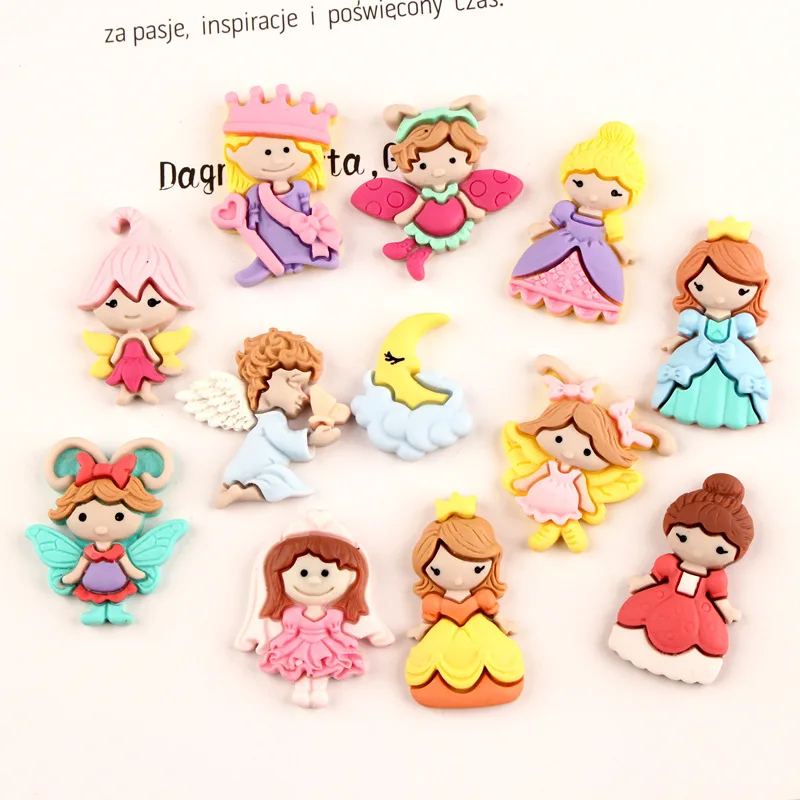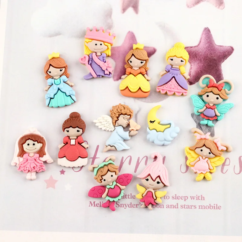 10 шт, смешанные цвета, с милым мультипликационным принтом ангела, полимерные Стразы плоские с оборота Кабошоны украшения для вырезок ремесл...