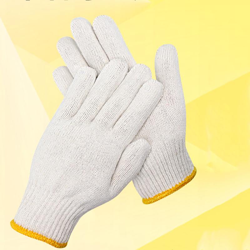 10 шт. Защитные перчатки хлопчатобумажные нитяные перчатки толстая нейлоновая белая пряжа противоскользящие износостойкие хлопчатобумажные нитяные рабочие перчатки 10pcs жёлтый