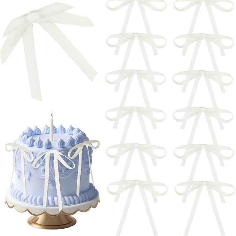 10 шт. Красно-розовые ленты-банты для украшения торта, ленты-банты, топперы для торта на день рождения, свадебные принадлежности для вечеринки, десерты, подарки, декор 8X13CM