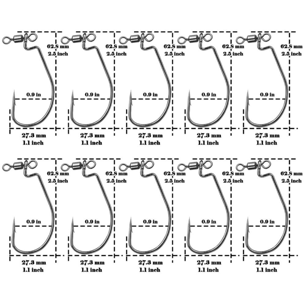 10 шт. Крючки с широким животом для спиннинговой оснастки дроп-шот с открытым вертлюгом, крючок без узла для морской рыбалки 5/0#