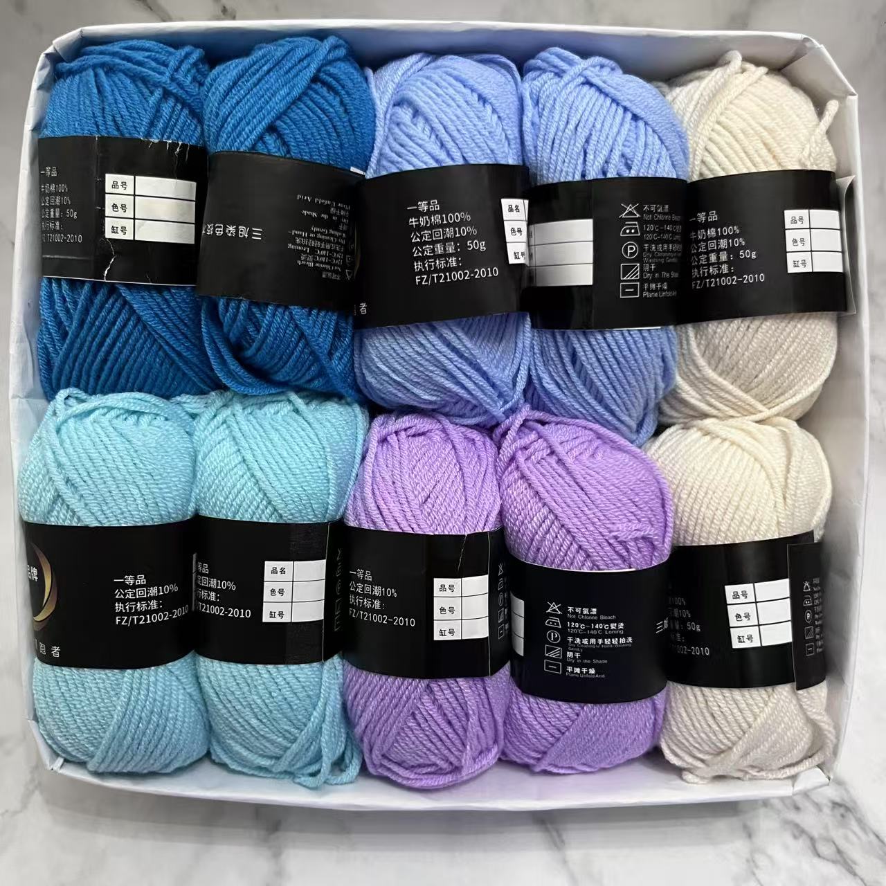 10 шт./Лот Молочный Хлопок Пряжа 500 г Мягкая Отобранная Окрашенная 4-слойная Пряжа для Вязания Набор для Вязания Крючком Вязаных Сумок Свитера Шарфа Принадлежности для Вязания