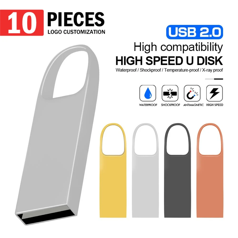 10 шт. водонепроницаемый USB-флешка, 4 ГБ, 8 ГБ, 16 ГБ, 32 ГБ, 64 ГБ, металлический флэш-накопитель, карта памяти, диск u с кольцом для ключей