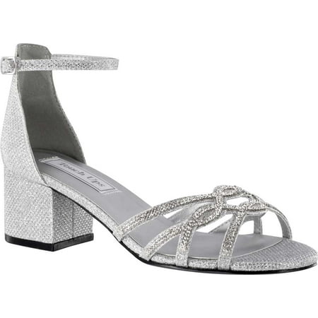 Women s Touch Ups Zoey Ankle Strap Heeled Sandal Silver Shimmer Synthetic 9 W