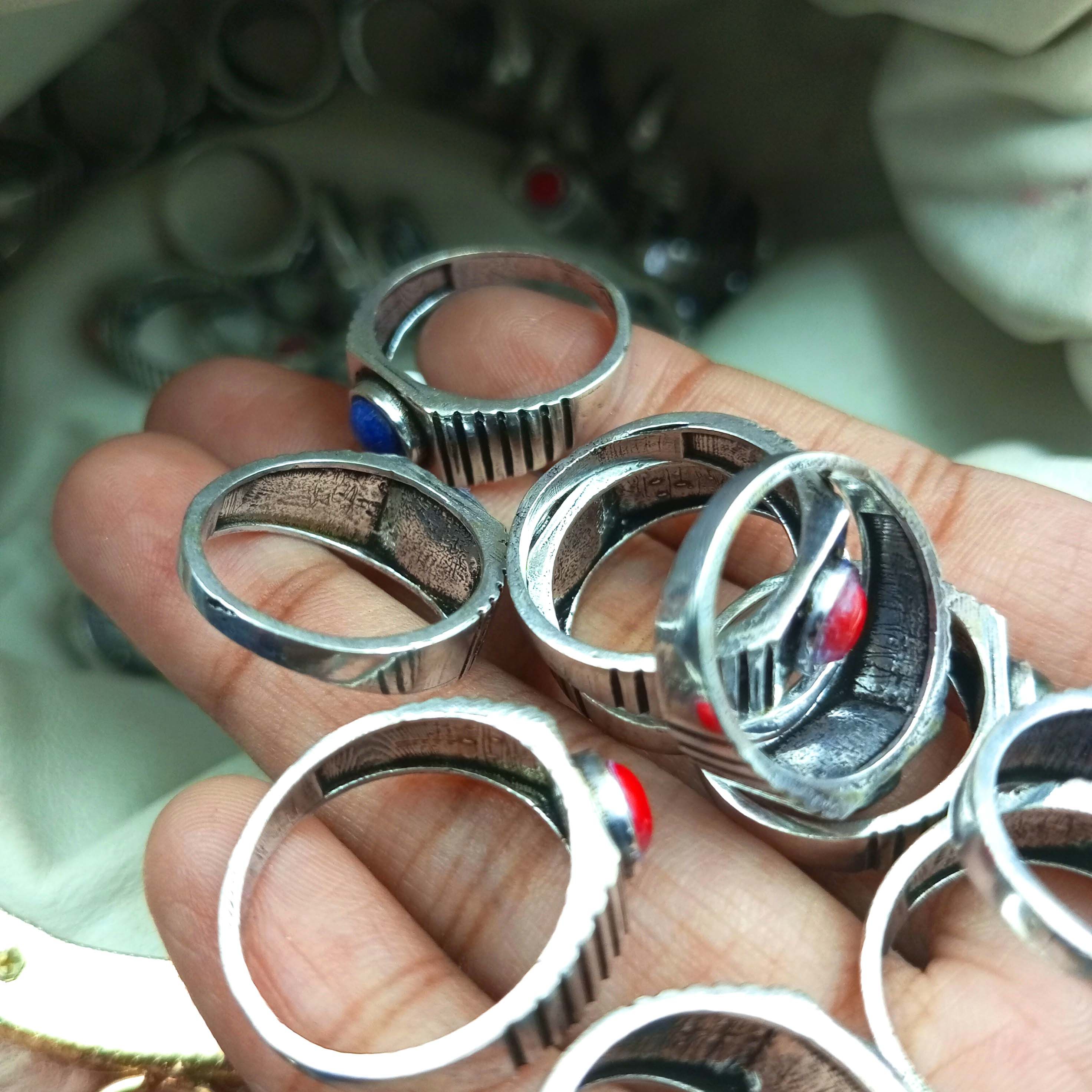10 шт. красный коралловый драгоценный камень 925 пробы с серебряным покрытием оптовая партия колец JOR-R33