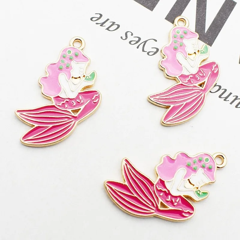 10 шт./лот розово-красная эмалированная капающая Русалка аксессуары из сплава Маленькая подвеска браслет Подвеска Аксессуары Оптовая прода...