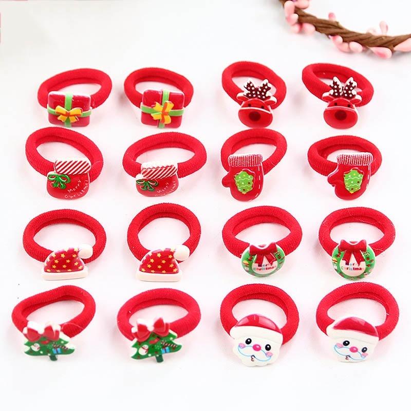 10 шт. модные популярные рождественские повязки для волос для девочек, елка, Санта, колокольчик, снеговик, эластичные косички, аксессуары, случайный стиль Random