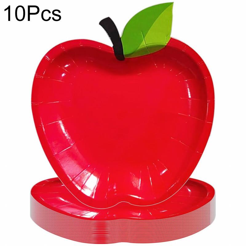 10 шт./набор Портативные бумажные тарелки в форме яблока Забавные товары для вечеринок Семейные посиделки Сезон возвращения в школу Милые 16x18 см 7 inches красный