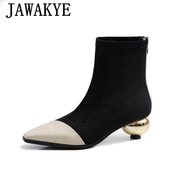 Elastic Patchwork Sock Boots Snake Pattern Square Toe Round Metal Heels Martin Boots 2019 Winter Shoes for women Botas Mujer