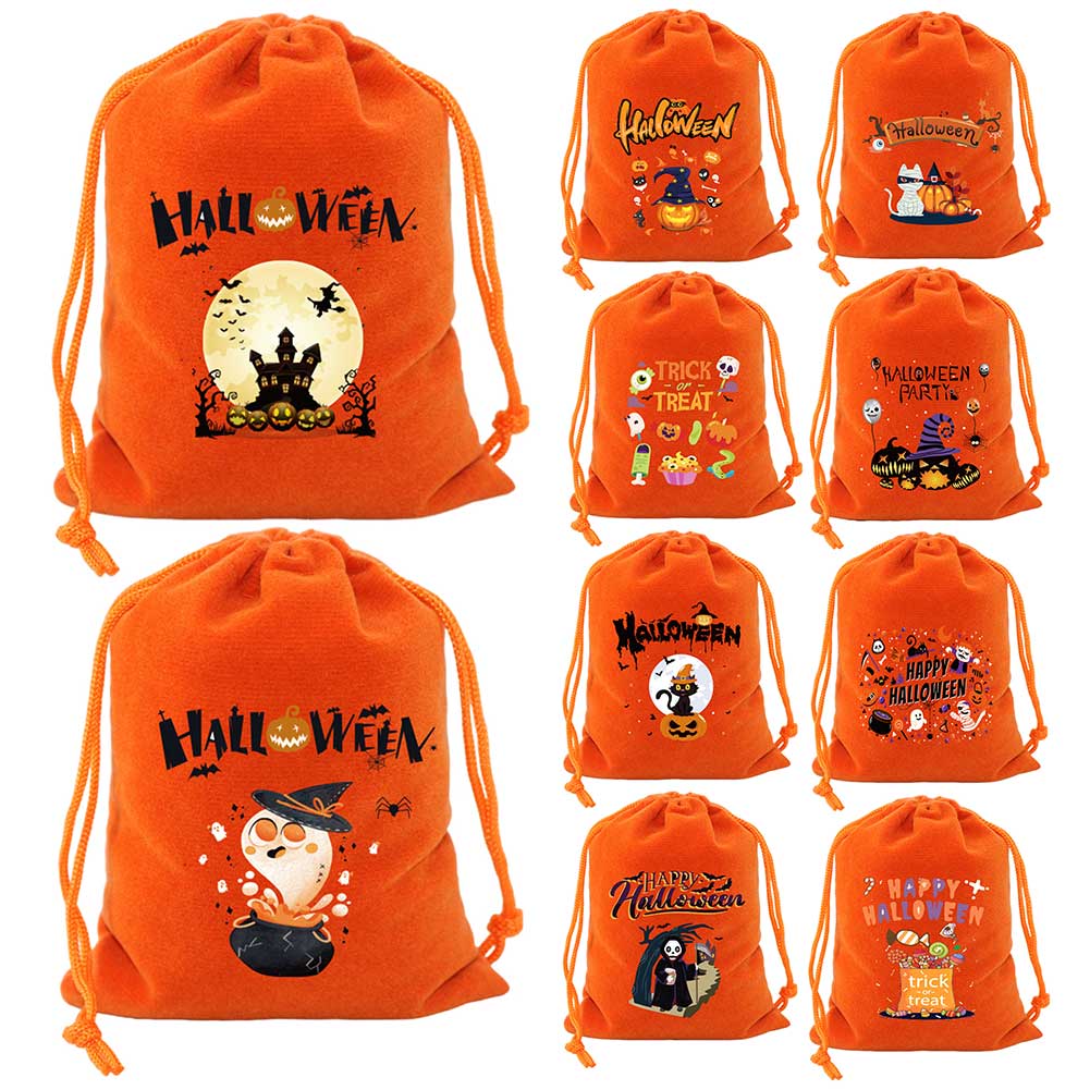 10 шт. фланелевая сумка для конфет, универсальные сумки для вечеринок, ведьма, тыква, череп, маленькие сумки для украшения вечеринки на Хэллоуин, сувениры