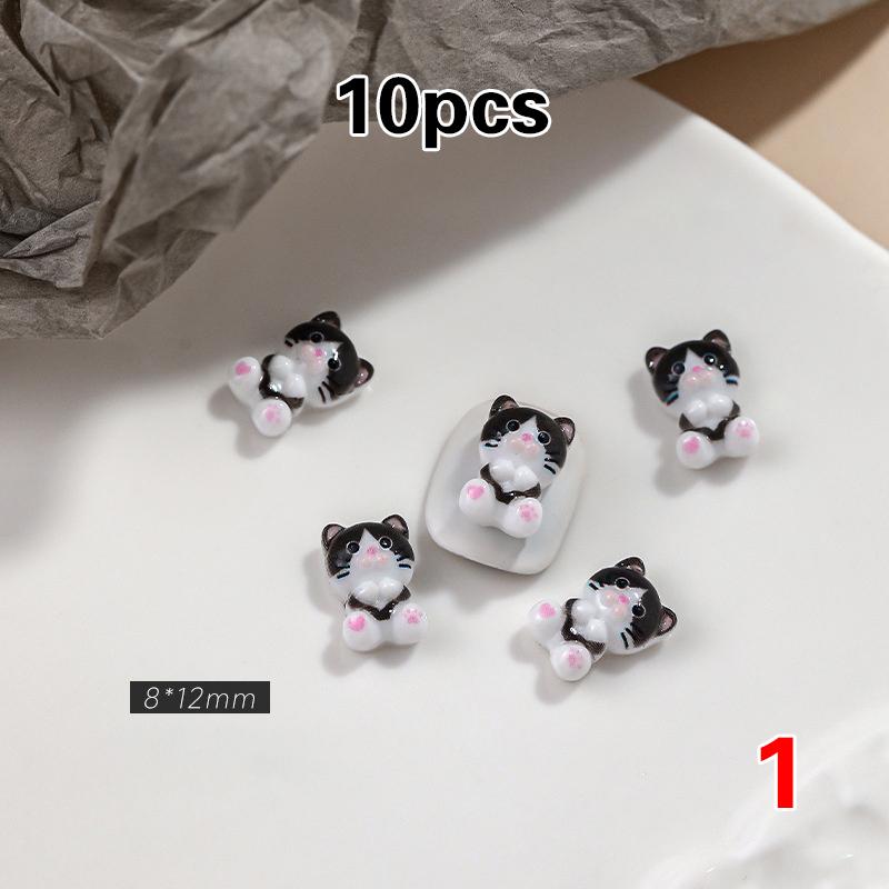 10 шт. черно-белые аксессуары для ногтей для кошек, мультяшные 3D-наклейки на ногти с милой кошачьей попкой, маленькие рыбки, украшения для ногтей из смолы, маникюрные украшения своими руками 1
