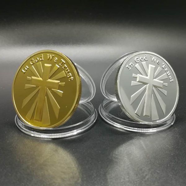 10 шт. (5 компл.) новый в боге мы доверяем зло против бога религиозные иисус 24 к настоящее золото посеребренные сувенир значок монеты беспл