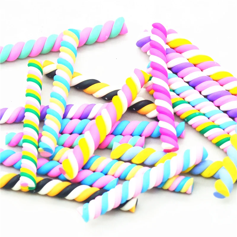 10 шт. 5 мм x 50 мм разноцветная полосатая полимерная глина, конфеты, тростник | Миниатюрные мягкие Калли для конфет | Миниатюры для вечевечерние...