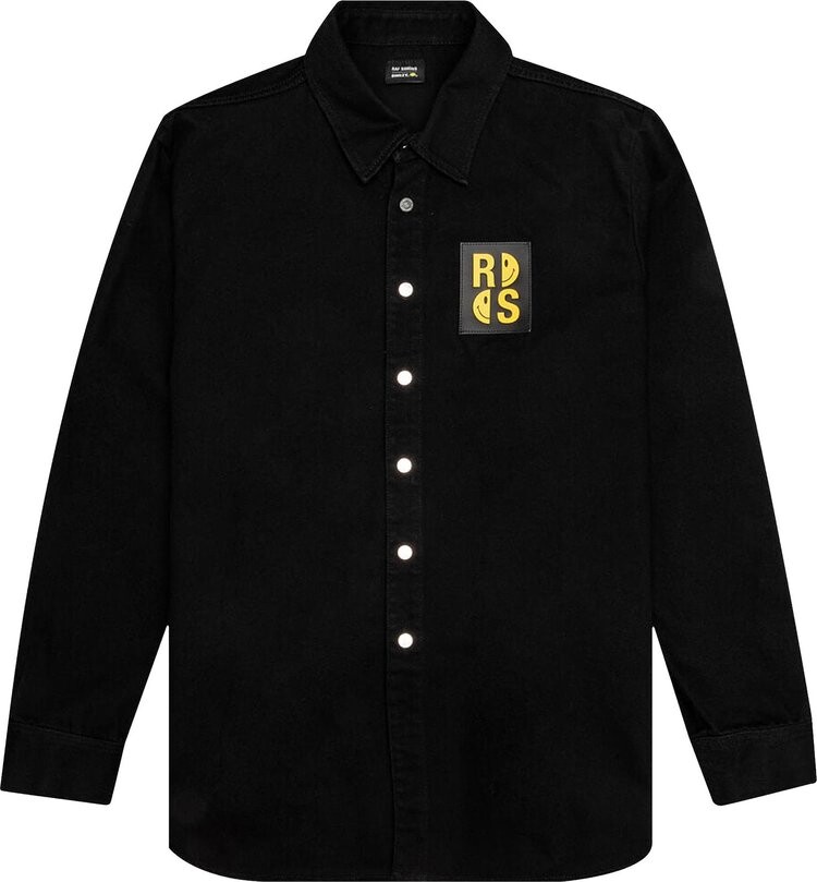 Рубашка Raf Simons Slim Fit Denim Shirt With Leather Patch 'Black', черный