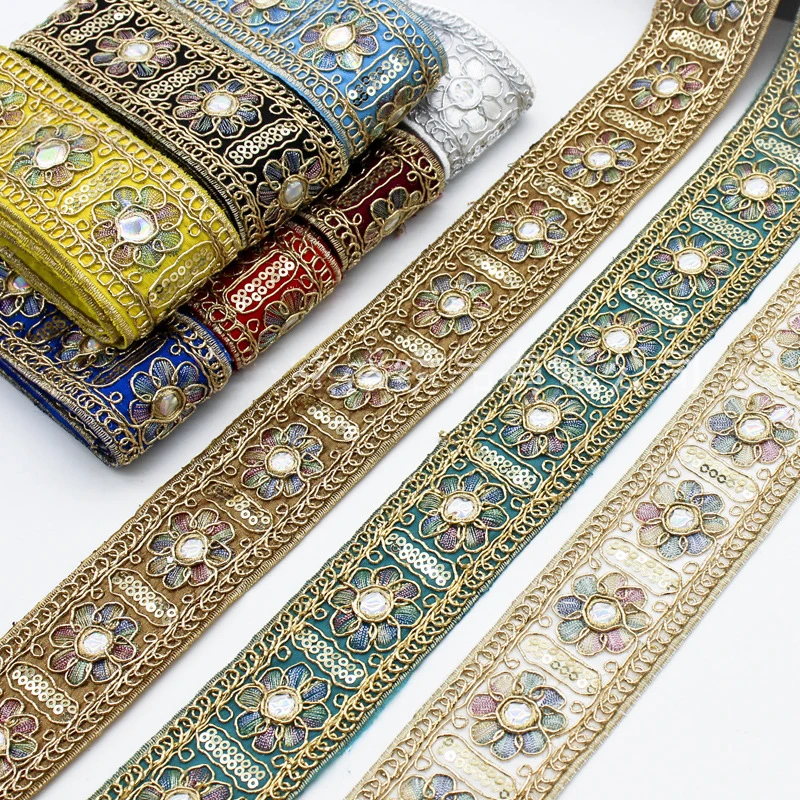 10 ярдов, кружевная бейка с вышивкой в стиле ретро, ширина 4,5 см, античная золотая нить, лента с блестками, сделай сам, швейное платье, отделка, аксессуар для декора