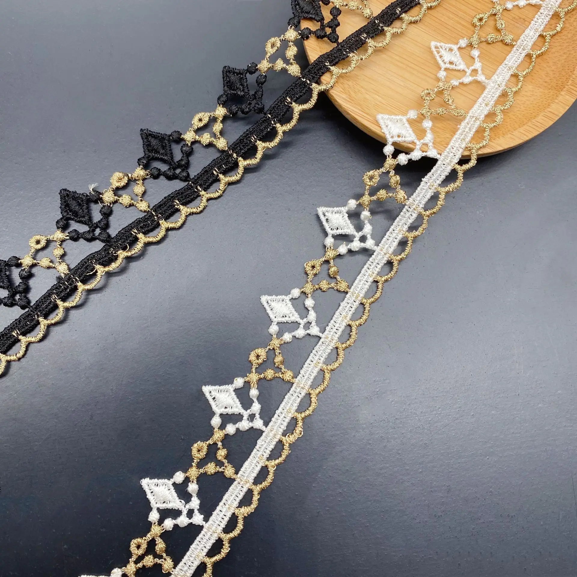 10 ярдов/лот, ширина 2,5 см, носимая лента с золотой нитью, полые кружевные аксессуары для одежды, двухцветная кружевная нить из черного золота H002