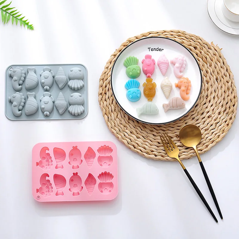 10 ячеек, морская рыба, морской конек, кукла, раковина, силиконовые формы для выпечки, формы для выпечки, шоколадное желе, печенье, формы для то...