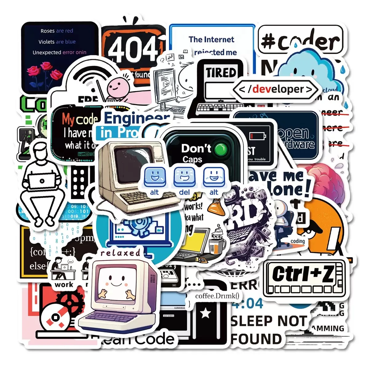 10/50PCS Funny Programmer 404 Network Error Stickers Internet Java Geek Php Docker Html Programming Language Decals Toy Sticker