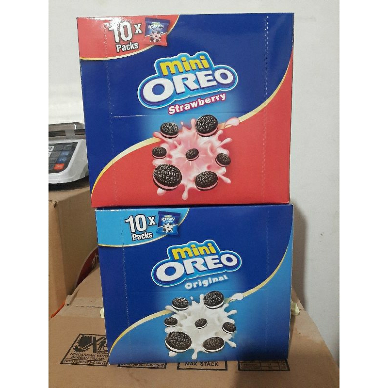 Mini Oreo 1 Box isi 10 Sachet x 20,4 gram, sedia 2 varian : Original dan Strawberry.