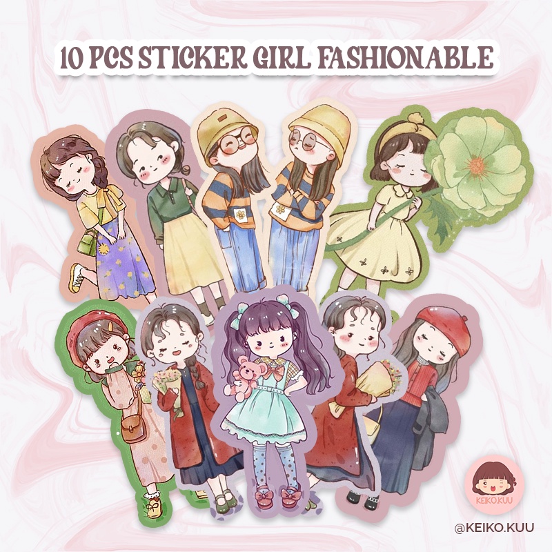 10 PCS STICKER SET GIRL FASHIONABLE WATERPROOF