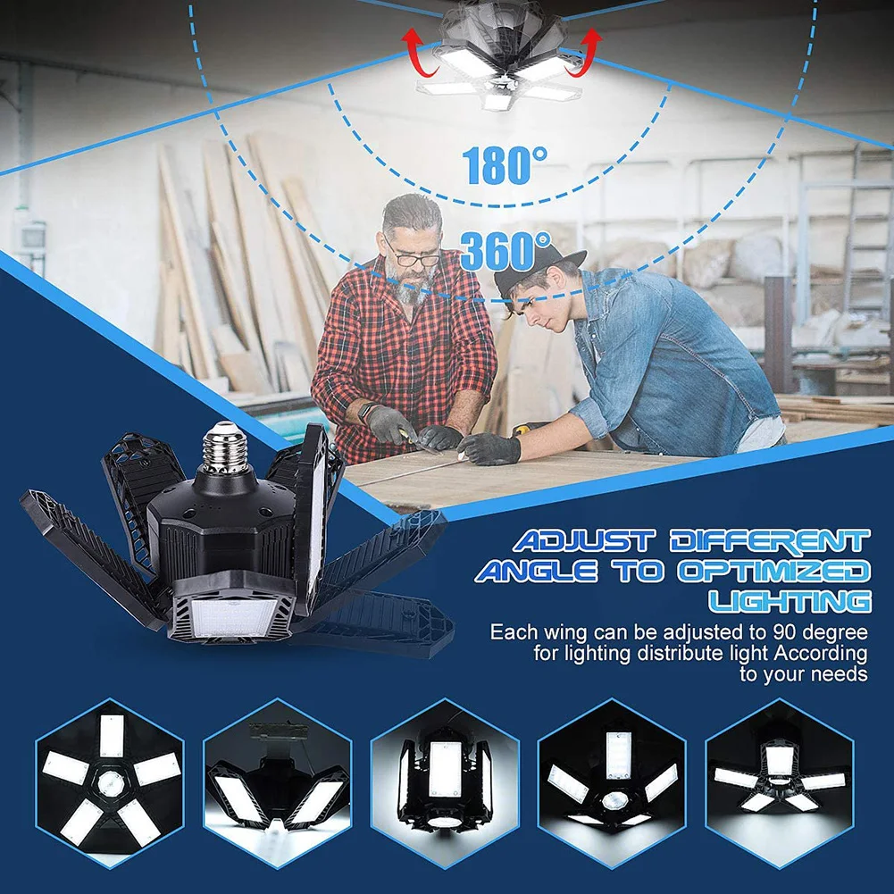 100 Вт 135LED деформируемая гаражная лампа E27, складные регулируемые панели, потолочные светильники, водонепроницаемая промышленная лампа для м...