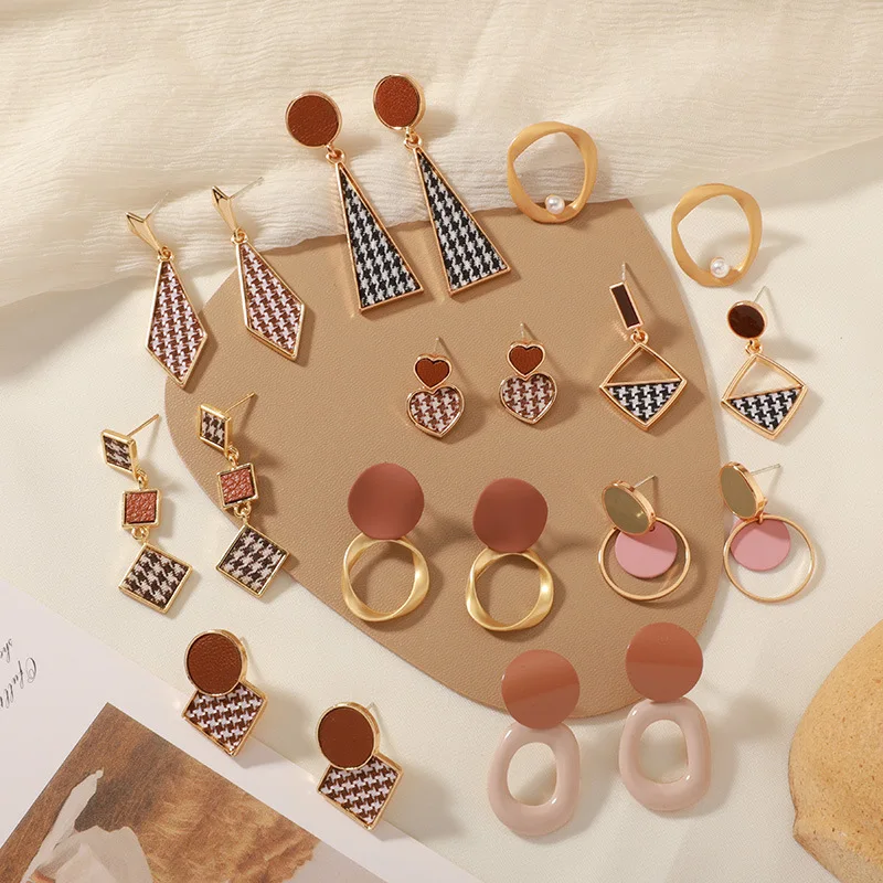 Vintage Geometric Drop Earrings for women 2022 Black White Plaid Cloth Round Dangle Korean Earrings Party Wedding Jewelry