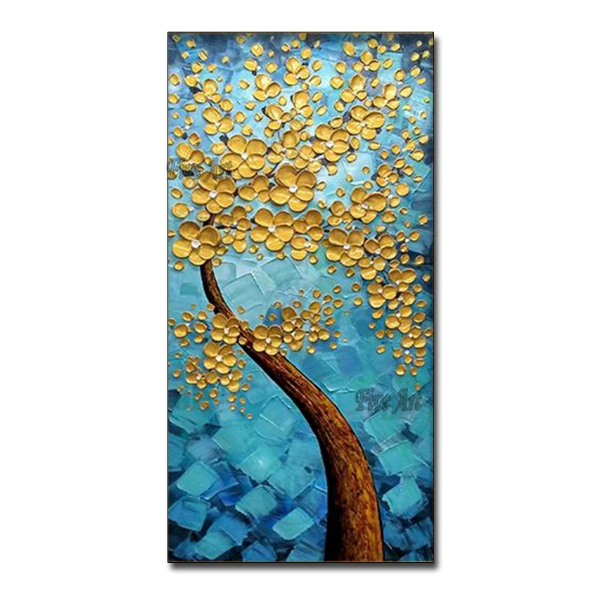 100% без рамки Искусство Ручная роспись Современные деньги дерево цветок нож масляная живопись на холсте настенное искусство для гостиной ук...