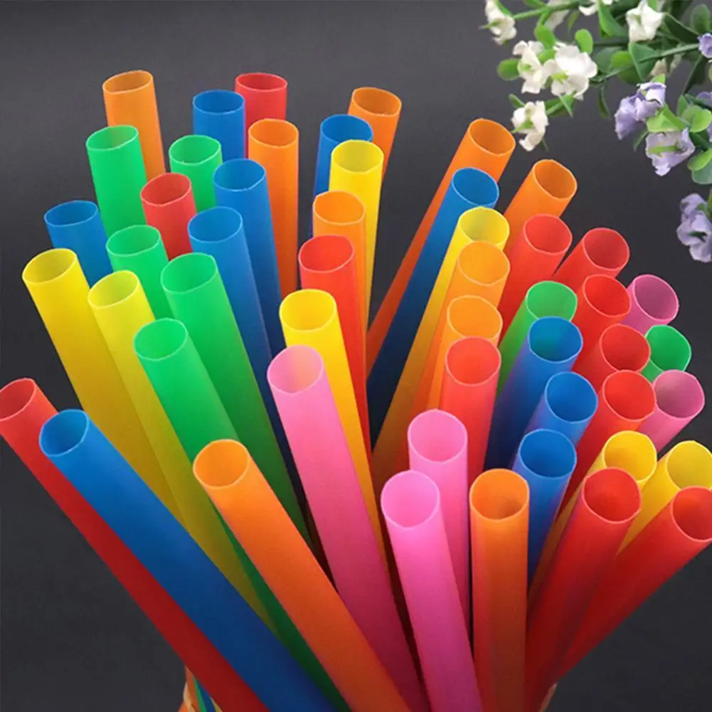 100 густая Соломка для молока и чая, цветная одноразовая пластиковая плоская солома, аксессуары для вечерние, трубка для молока, прямой рот, с...