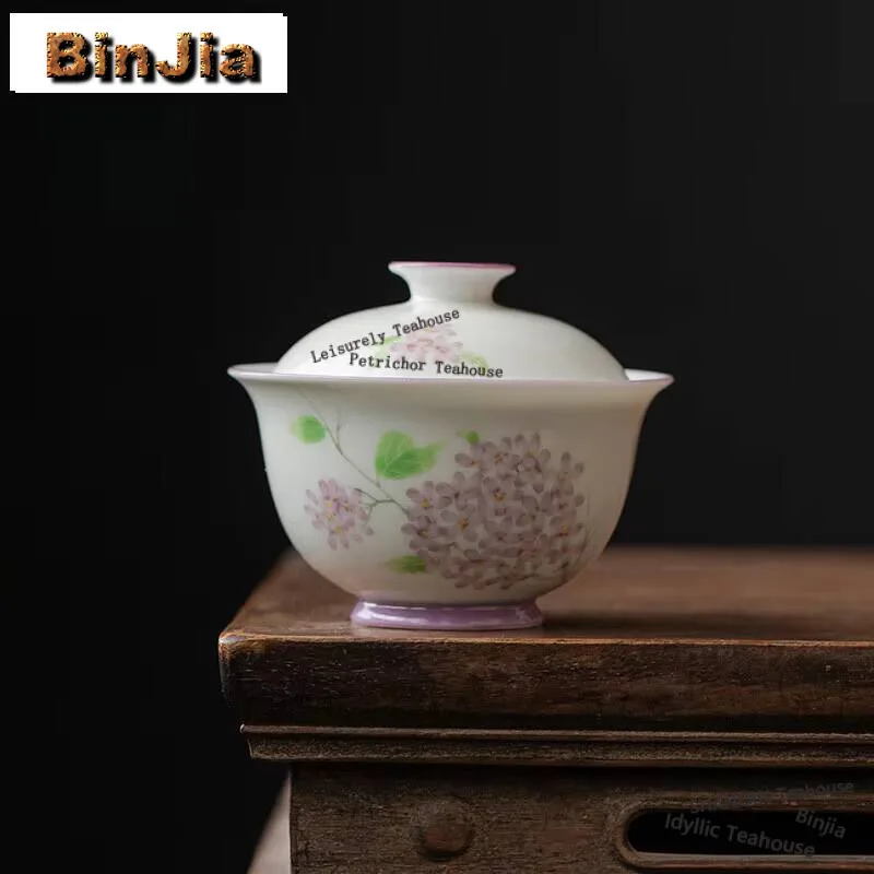 100 мл нефритовая грязь, чаша ручной работы, ручная роспись, цветы глицинии, Гайвань, элегантный чайный чайник, винтажный чайный сервиз, подарки для рукоделия