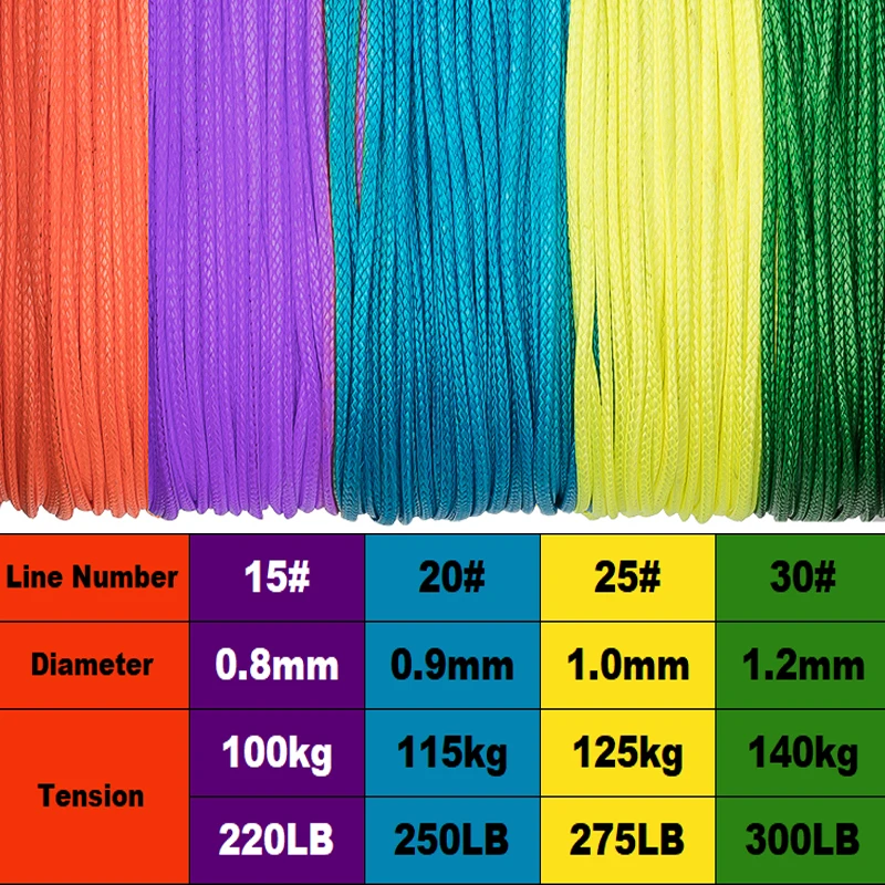 100 м большой размер 16 нитей плетеная леска мультифиламентная ПЭ морская рыболовная специальная леска диаметр 0,8/0,9/1,0/1,2 мм