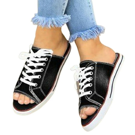 huanledash 1 Pair Flat Slipper Thick Heel Comfortable Canvas Open Toe Soft Sole Sandals Daily Shoes