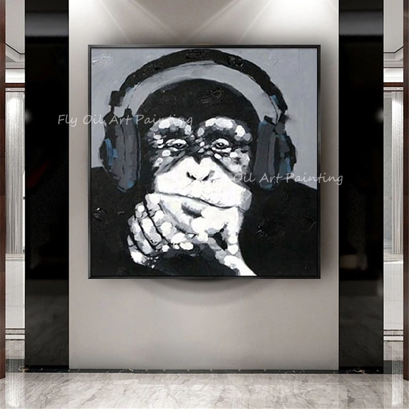 100% ручная работа, серая и черная обезьяна, музыкальная квадратная картина, милая животная масляная живопись для офиса, гостиной в качестве п...