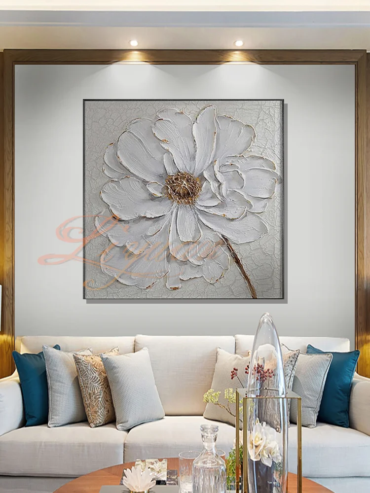 100% ручная роспись, современная абстрактная белая Цветочная масляная живопись на холсте, настенная живопись для гостиной, отеля, декор в эст...