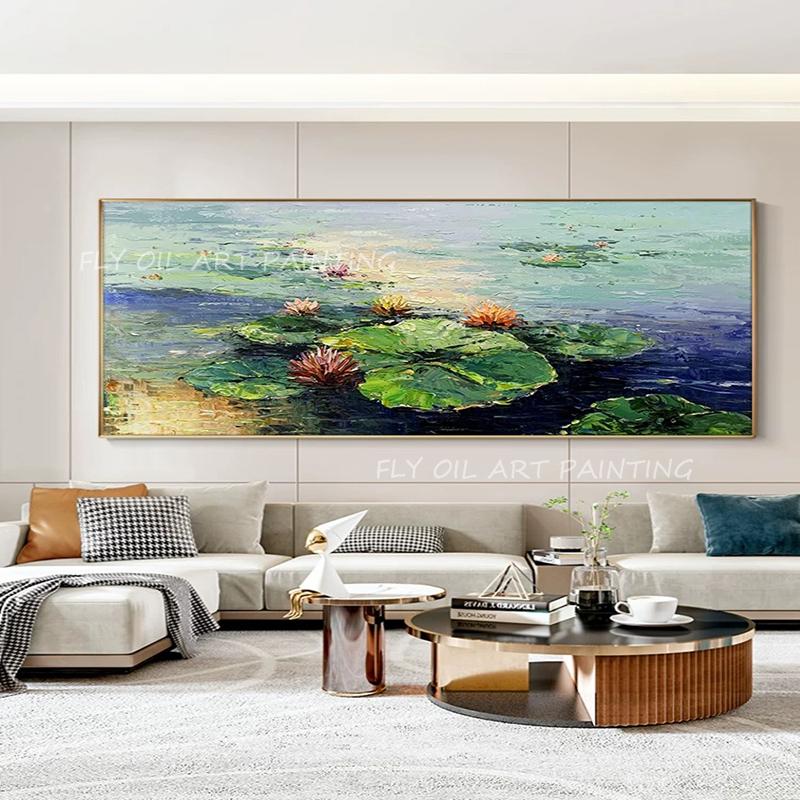100% ручная роспись цветок лилии озеро пейзаж картина толстая картина маслом для украшения дома в подарок без рамки