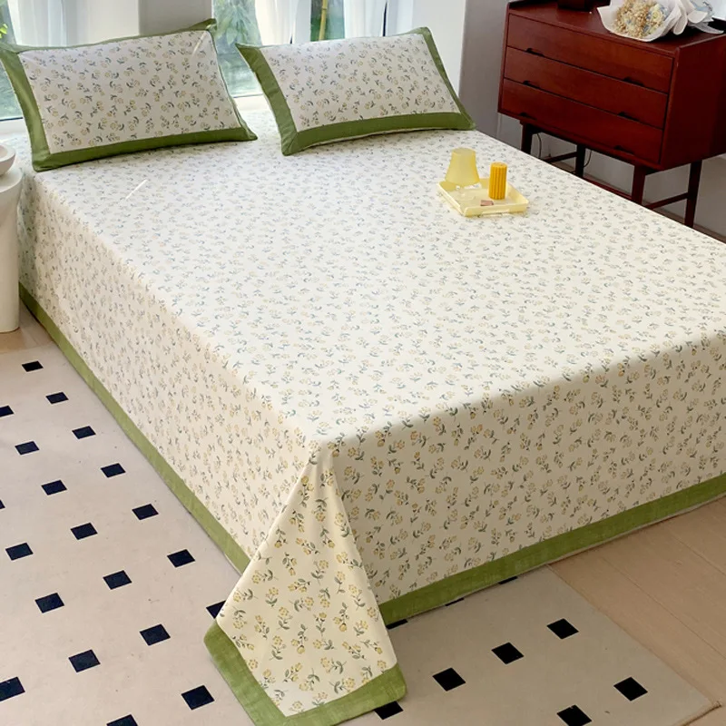 100% хлопок старая грубая ткань постельное белье одиночное хлопковое с цветочным принтом одиночное хлопковое льняное покрывало для общежити...