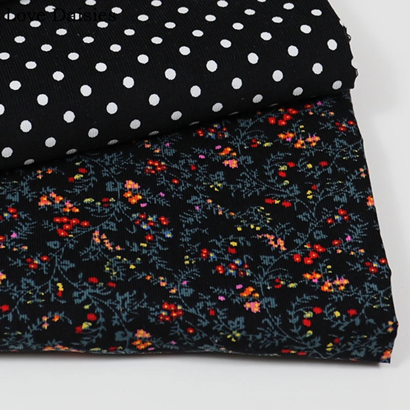 100% хлопок, черная, темно-синяя, красная Гортензия, красные, оранжевые цветы, в белый горошек, тонкая Вельветовая мягкая ткань для одежды, шляпы, платья, рубашки