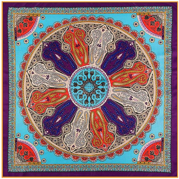 100% шелковый шарф женщины квадратные шарфы богемия пейсли печатная печать дежурчан женская фулярная бандана леди оголовье мусульманская обе, Black